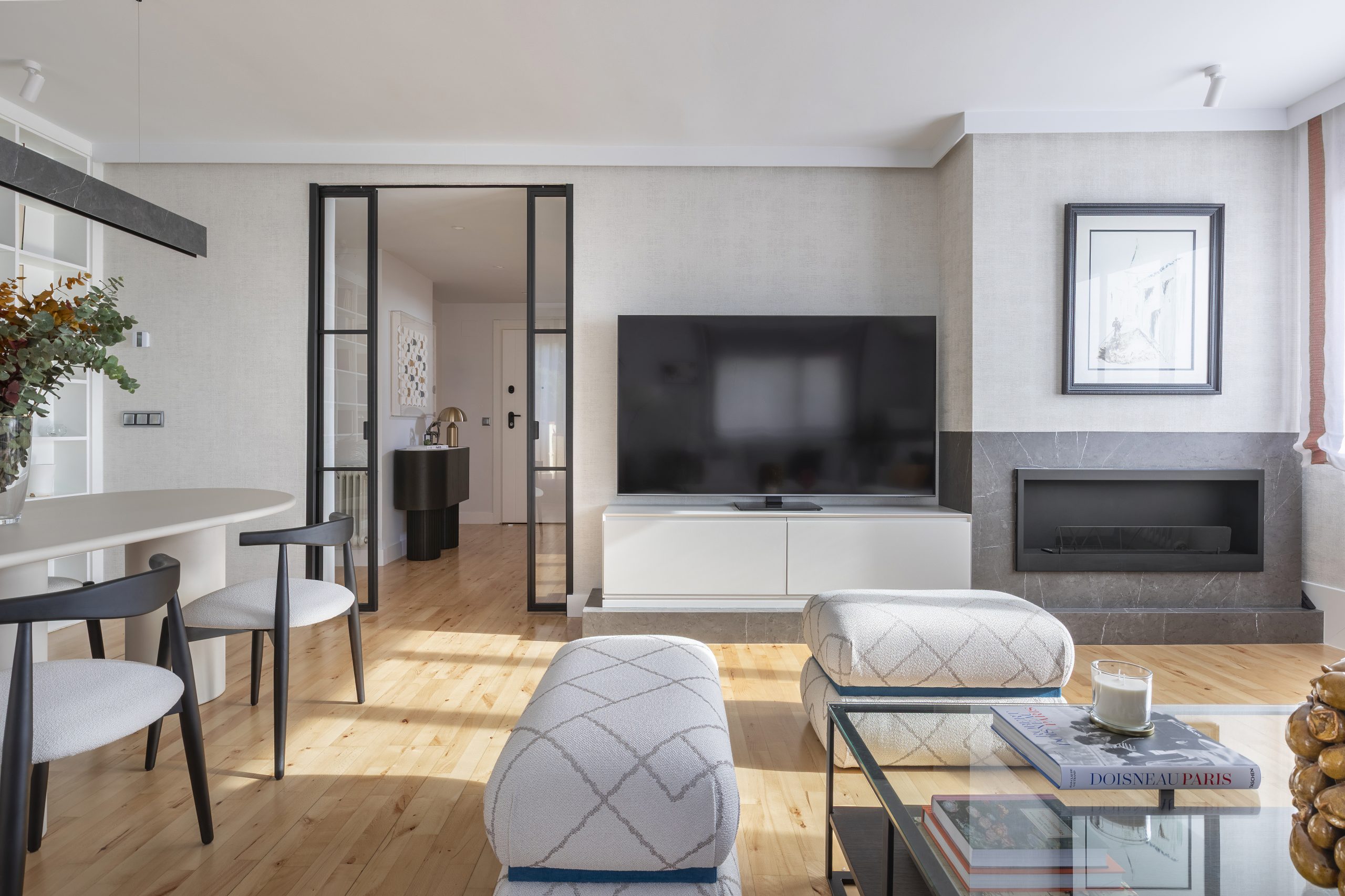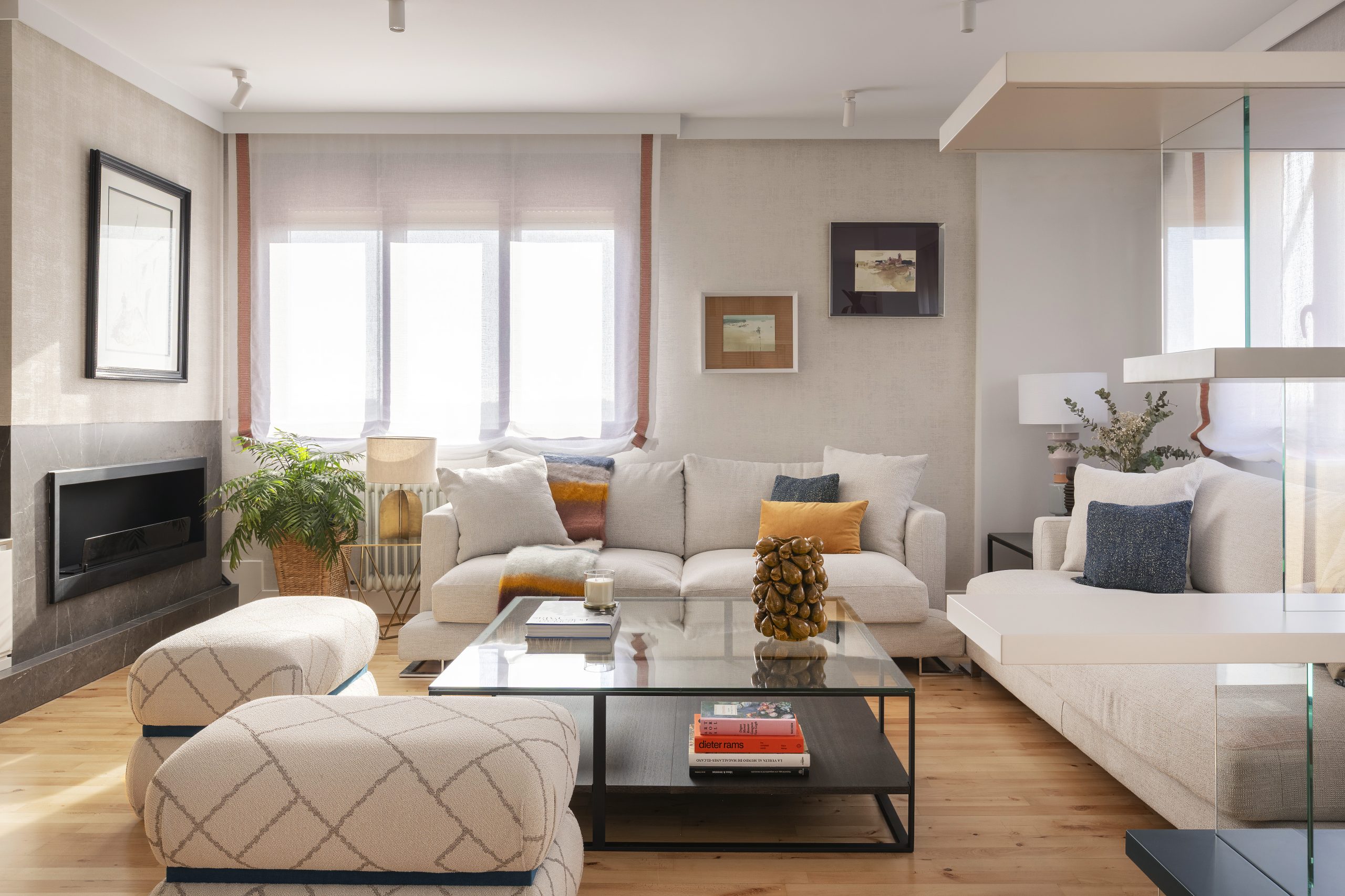 En este proyecto de reforma en Alcobendas (Madrid) transformamos una vivienda con gran entrada de luz natural y vistas abiertas en un hogar moderno, funcional y muy cálido. El objetivo era ganar orden, mejorar el confort y unificar la estética de toda la casa con una paleta clara, maderas naturales y pequeños acentos de color.